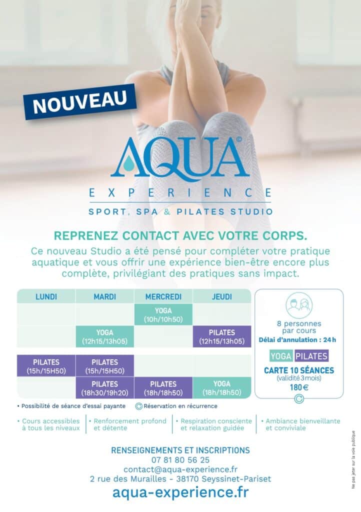 Aqua Experience, c’est un centre privé de 250 m2 entièrement conçu pour vous offrir une véritable parenthèse, entre activités aquatiques adaptées à votre niveau, séances en petit groupe dans notre studio de Pilates & Yoga, et instant de relaxation dans notre espace détente avec sauna & hammam. Nous vous invitons à découvrir un lieu empreint de sérénité, proposant des expériences pour tous les âges : jeunes, adultes ou seniors. Un cadre idéal pour bouger, se détendre et se ressourcer.