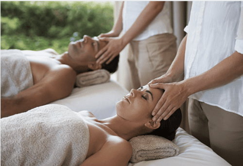 Profiter des bienfaits du massage en couple : le déroulement du soin est généralement synchronisé et coordonné par les masseurs, ce qui optimise l’efficacité du massage et accroît la détente ressentie.